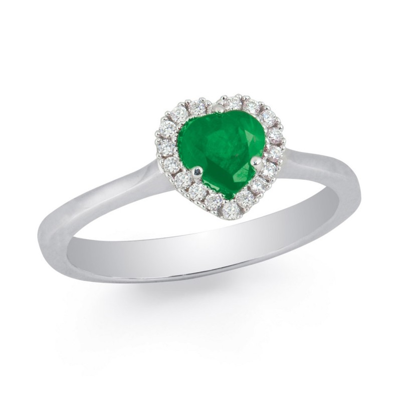 Bague en forme de coeur Or blanc Diamants et Emeraude