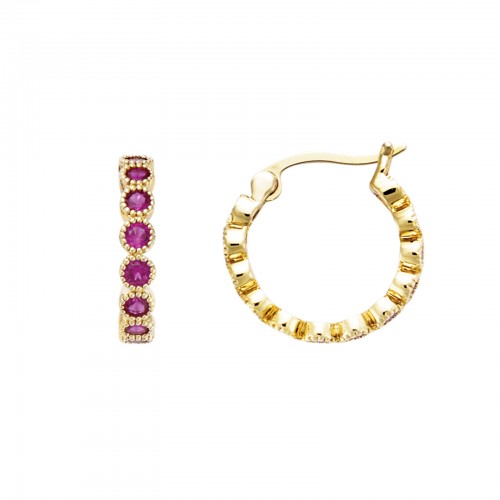 Boucles d'oreilles en Plaqué Or serties de pierres couleur fuchsia. Cette paire de boucles d'oreilles apportera de la brillance à votre visage.