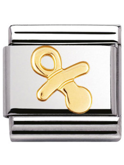 Maillon de bracelet Nomination classic tétine en Or sur une base en Acier Inoxydable. Votre commande de maillon(s) Nomination vous sera livrée dans son écrin Nomination accompagnée de son certificat d'authenticité et d'un catalogue Nomination.