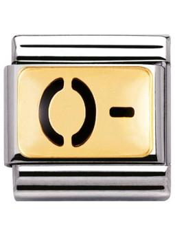 Maillon de bracelet Nomination classic groupe sanguin O- en Or 750 et émail noir. Votre commande de maillon(s) Nomination vous sera livrée dans son écrin Nomination accompagnée de son certificat d'authenticité et d'un catalogue Nomination.