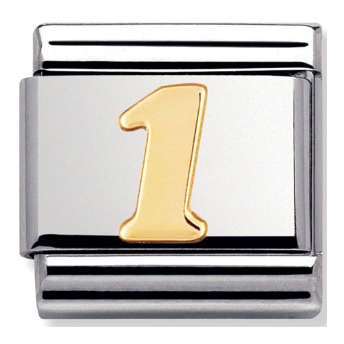 Maillon de bracelet Nomination classic, chiffre 1 en Or. Votre commande de maillon(s) Nomination vous sera livrée dans son écrin Nomination accompagnée de son certificat d'authenticité et d'un catalogue Nomination.