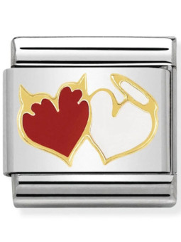 Maillon Nomination classic coeurs Ange et Démon en émail et Or