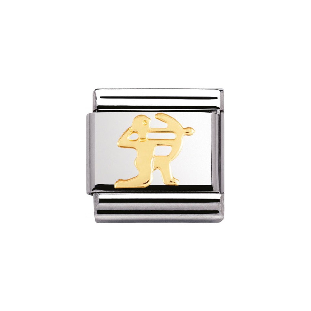 Maillon de bracelet Nomination classic signe du zodiaque sagittaire en Or. Votre commande de maillon(s) Nomination vous sera livrée dans son écrin Nomination accompagnée de son certificat d'authenticité et d'un catalogue Nomination.