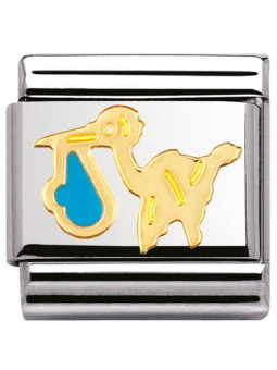 Maillon de bracelet Nomination classic, cigogne bleu en émail sur Or. Votre commande de maillon(s) Nomination vous sera livrée dans son écrin Nomination accompagnée de son certificat d'authenticité et d'un catalogue Nomination.