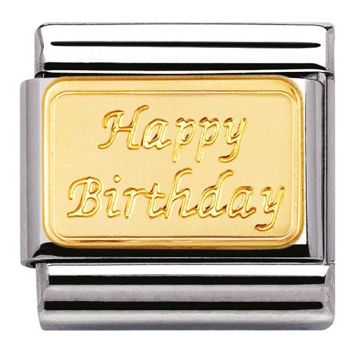 Maillon de bracelet Nomination classic recouvert d'une plaque en Or avec la mention Happy Birthday. Votre commande de maillon(s) Nomination vous sera livrée dans son écrin Nomination accompagnée de son certificat d'authenticité et d'un catalogue Nomination.