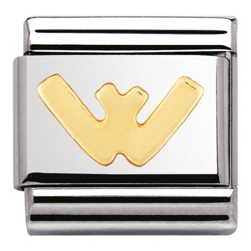 Maillon de bracelet Nomination classic, lettre W standard en Or. Votre commande de maillons Nomination vous sera livrée dans son écrin Nomination accompagnée de son certificat d'authenticité et d'un catalogue Nomination.