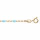 Bracelet chaîne en argent doré décoré d’olives en résine bleu clair. Longueur 15+3 cm (18 cm), 1,20 g. Lumineux et élégant.