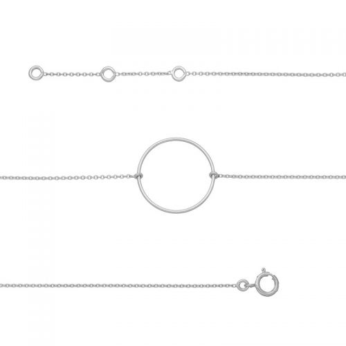 Sublime collier en Or blanc 750ème (18 carats) composé d'une chaine maille forçat et d'un pendentif avec double anneaux entrelacés d'un diamètre de 16 et 25 mm. Fermoir anneau ressort et anneau intermédiaire à 42 cm.