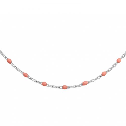 Délicat et féminin, ce collier en argent rhodié est orné de petites olives en résine rose. Sa couleur douce et lumineuse apporte raffinement et élégance.