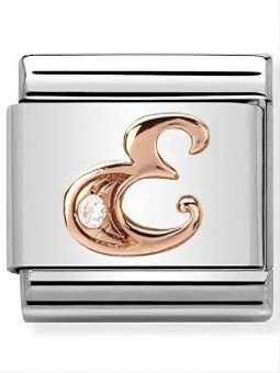 Maillon de bracelet Nomination classic, lettre E en Or rose sertie d'un oxyde de zirconium blanc. Votre commande de maillons Nomination vous sera livrée dans son écrin Nomination accompagnée de son certificat d'authenticité et d'un catalogue Nomination.