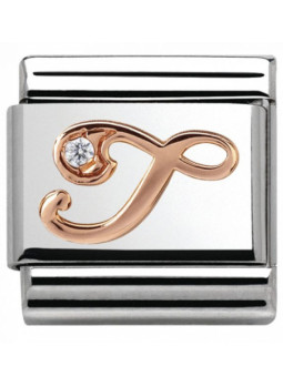 Maillon de bracelet Nomination classic, lettre T en Or rose sertie d'un oxyde de zirconium blanc. Votre commande de maillons Nomination vous sera livrée dans son écrin Nomination accompagnée de son certificat d'authenticité et d'un catalogue Nomination.