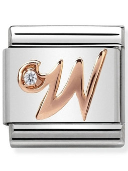 Maillon de bracelet Nomination classic, lettre W en Or rose sertie d'un oxyde de zirconium blanc. Votre commande de maillons Nomination vous sera livrée dans son écrin Nomination accompagnée de son certificat d'authenticité et d'un catalogue Nomination.