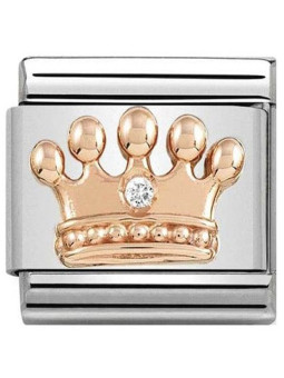 Maillon de bracelet Nomination classic couronne avec une pierre blanche en Or rose 9 carats. Votre commande de maillon(s) Nomination vous sera livrée dans son écrin Nomination accompagnée de son certificat d'authenticité et d'un catalogue Nomination.