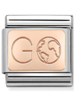 Maillon de bracelet Nomination classic représentant un G et un globe en Or rose 9 carats sur une base en acier inoxydable. Votre commande de maillon(s) Nomination vous sera livrée dans son écrin Nomination accompagnée de son certificat d'authenticité et d'un catalogue Nomination.