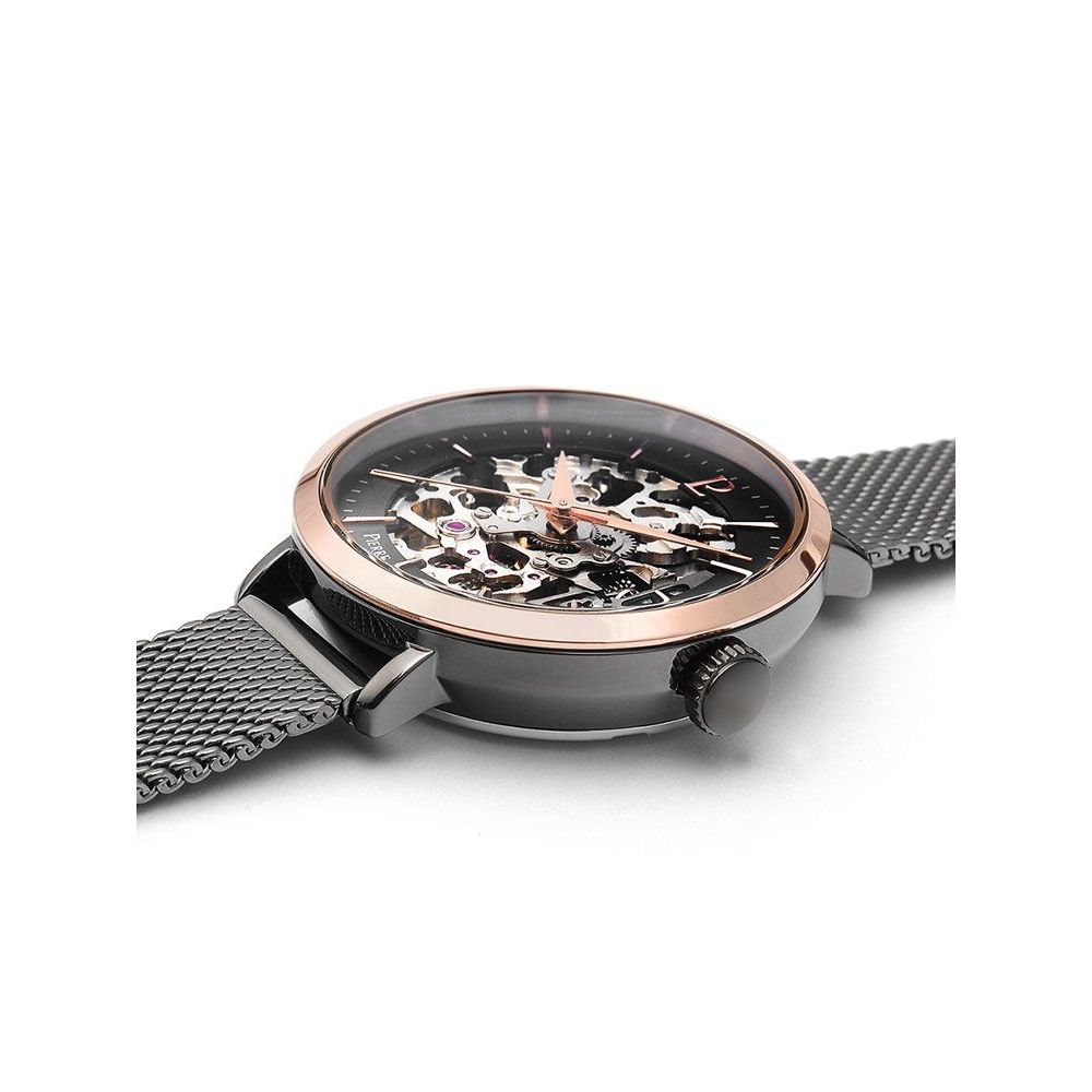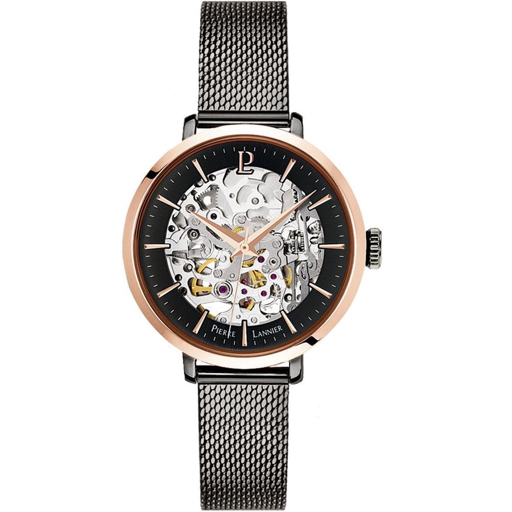 Montre femme AUTOMATIC 314C988 : boîtier rond acier gris 35 mm, cadran gris soleillé, aiguilles doré-rose, bracelet milanais gris, mouvement automatique 3 aiguilles, étanche 30M.