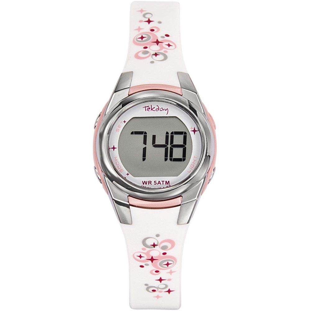 Montre digitale femme TEKDAY 653608, rose et blanche, sport, étanche 5 ATM.