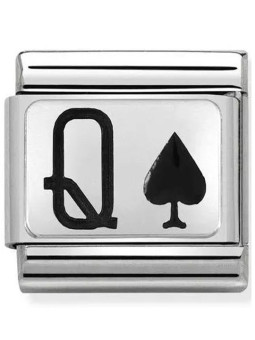 Maillon de bracelet Nomination classic dame de pique en Argent et émail de couleur noire sur une base en acier inoxydable. Votre commande de maillon(s) Nomination vous sera livrée dans son écrin Nomination accompagnée de son certificat d'authenticité et d'un catalogue Nomination.