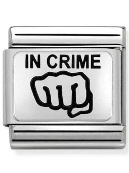 Maillon de bracelet Nomination classic avec l'inscription In crime (traduction de crime) avec un visuel de poing en Argent sur une base en acier inoxydable. Votre commande de maillon(s) Nomination vous sera livrée dans son écrin Nomination accompagnée de son certificat d'authenticité et d'un catalogue Nomination.